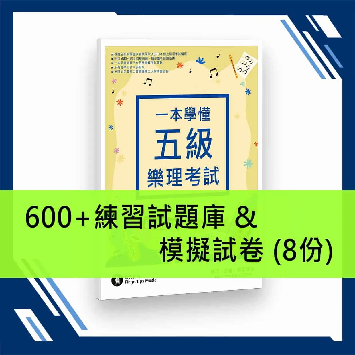 註:本商品只包含五級樂理網上試題庫及 8 份網上模擬試卷,並不包括「一本學懂五級樂理」精讀講義及教學短片